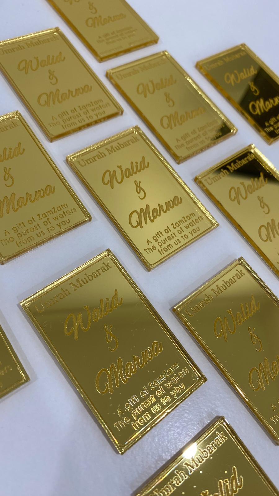 Experience the blessings with our Umrah Mubarak or Kateb El Kitab ZamZam gift bottle tags. The perfect addition to your gift, these tags add a touch of spirituality and elegance. Share the joy with your loved ones today!